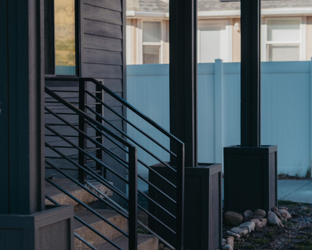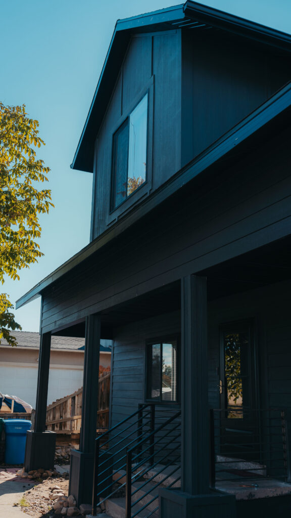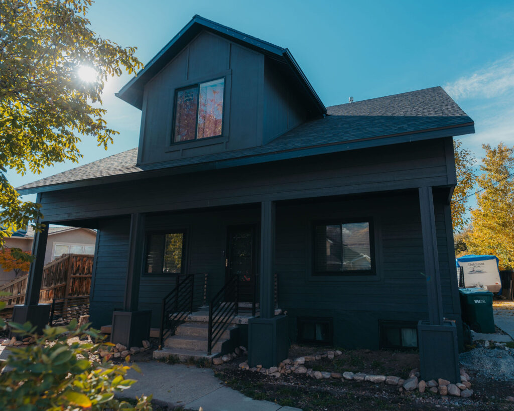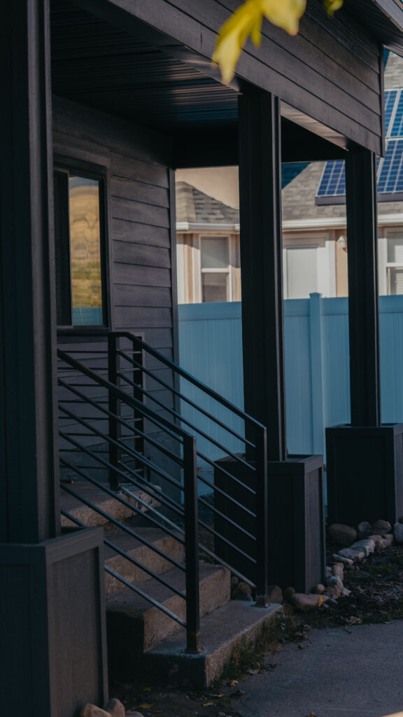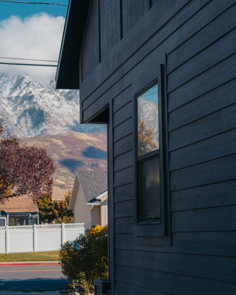 The Orem Project showcases a modern residential transformation that blends clean architectural lines with durable, high quality materials. The home features a striking dark exterior finish paired with custom metal railings and carefully detailed trim that enhances both the structure’s contemporary style and long term durability. Thoughtful design elements such as the covered entry, geometric siding patterns, and expansive windows create a balanced look that feels both modern and welcoming. Set against the beautiful Utah landscape, the project highlights how intentional craftsmanship and refined exterior design can elevate a home’s curb appeal while maintaining functionality and structural integrity.