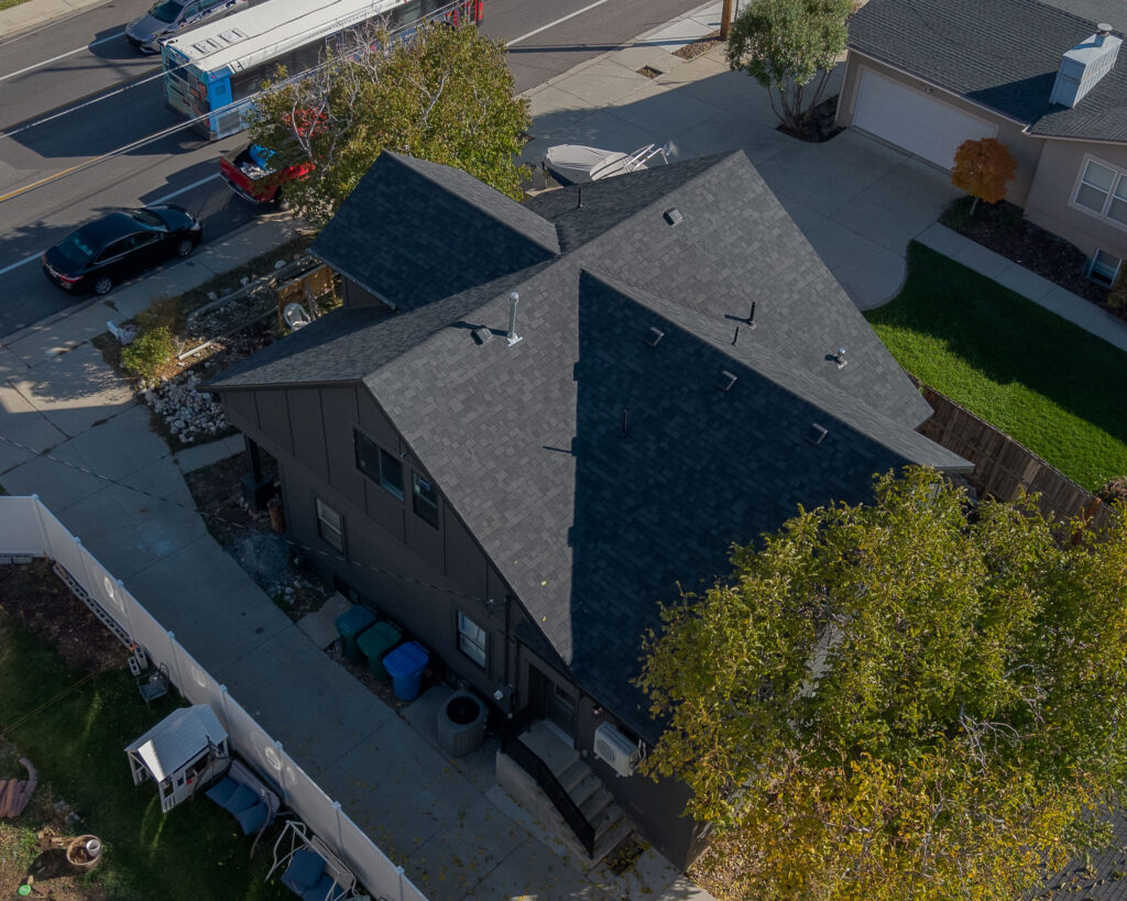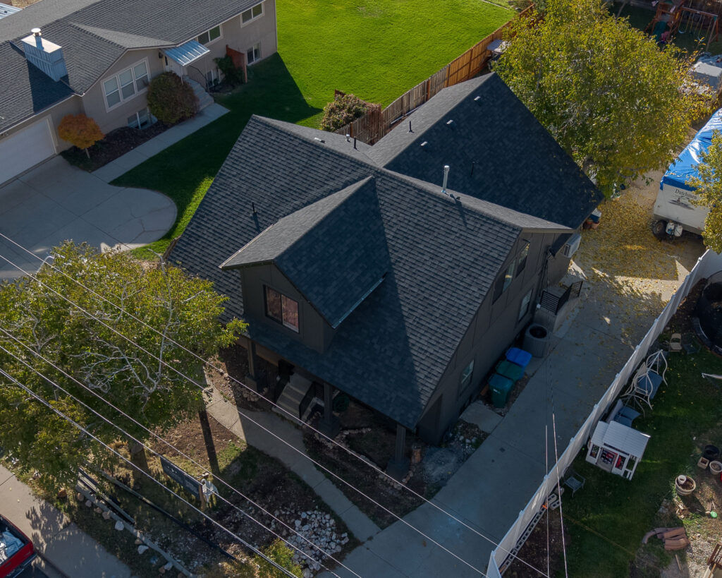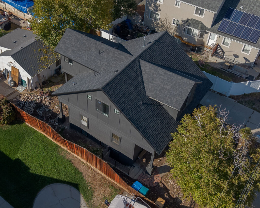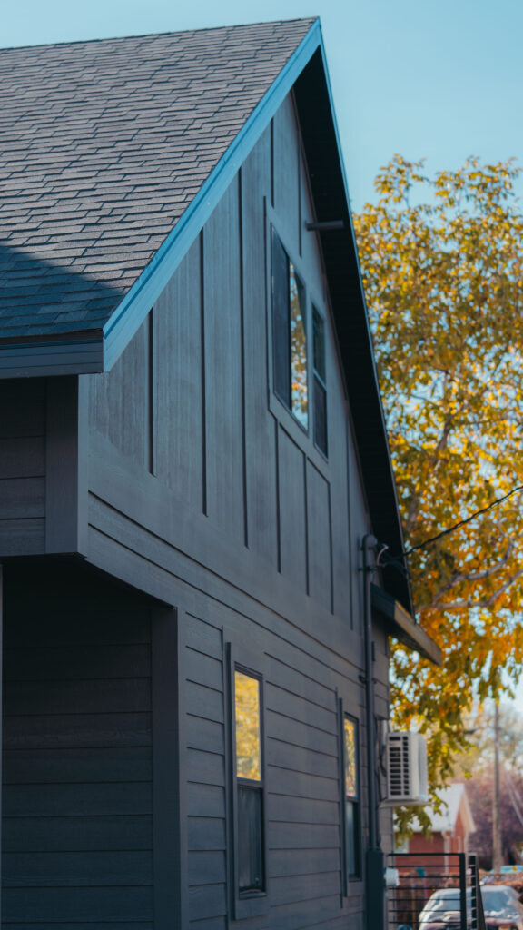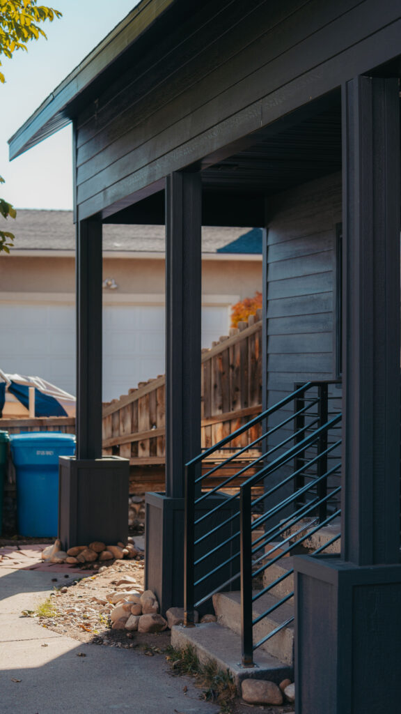 The Orem Project showcases a modern residential transformation that blends clean architectural lines with durable, high quality materials. The home features a striking dark exterior finish paired with custom metal railings and carefully detailed trim that enhances both the structure’s contemporary style and long term durability. Thoughtful design elements such as the covered entry, geometric siding patterns, and expansive windows create a balanced look that feels both modern and welcoming. Set against the beautiful Utah landscape, the project highlights how intentional craftsmanship and refined exterior design can elevate a home’s curb appeal while maintaining functionality and structural integrity.