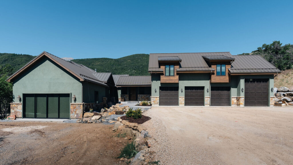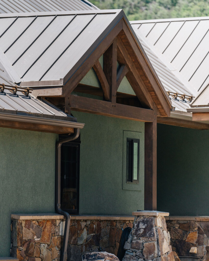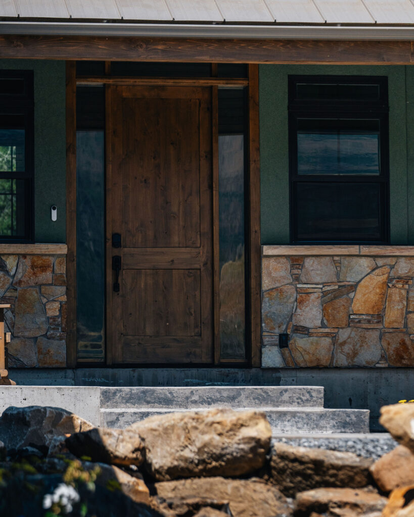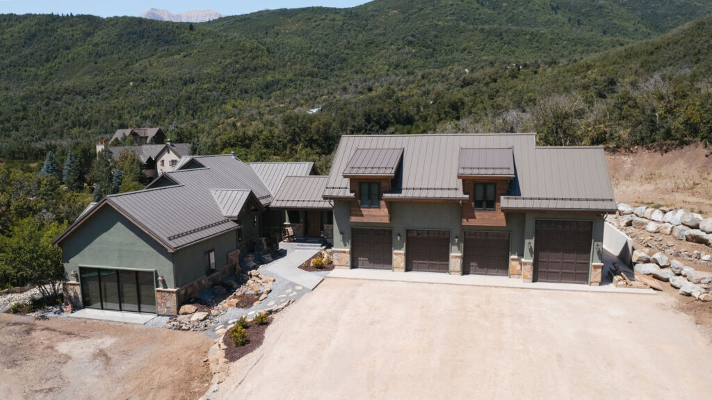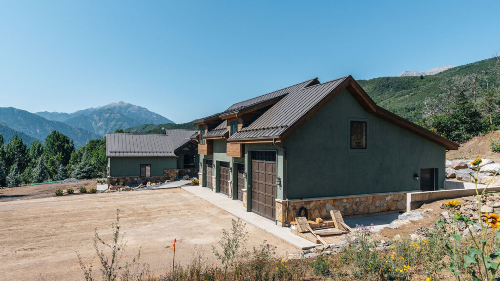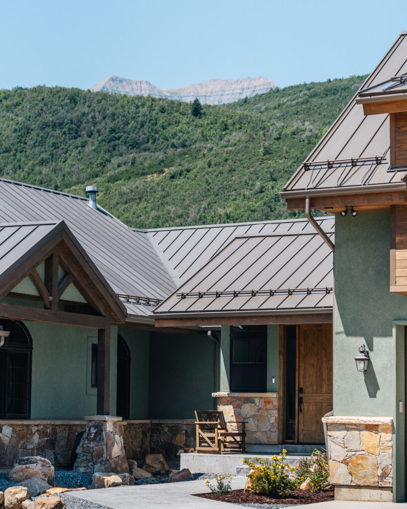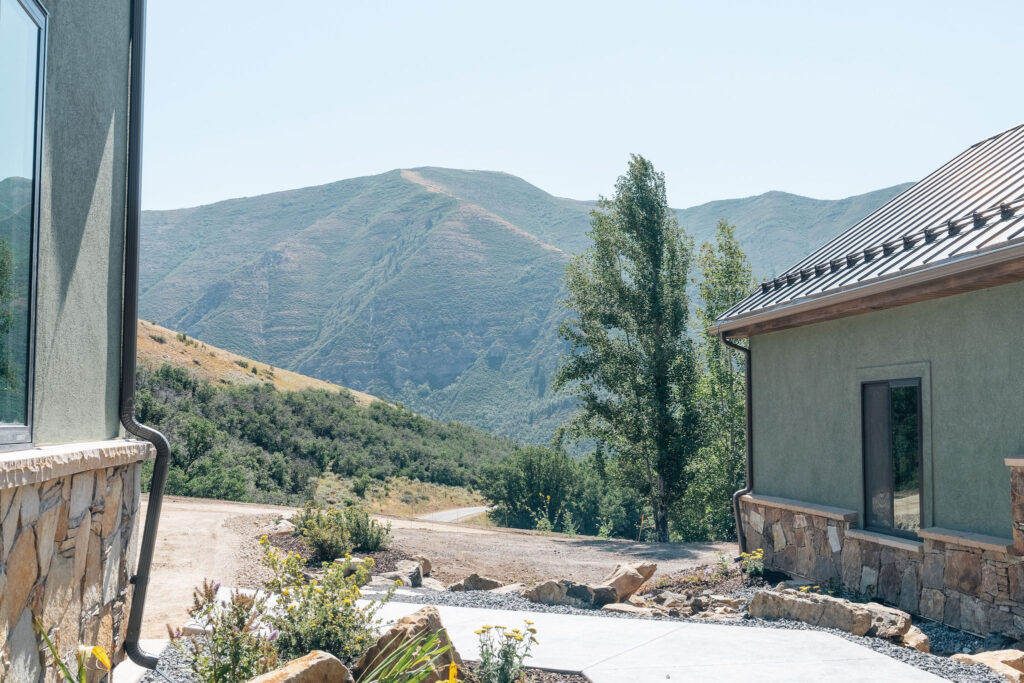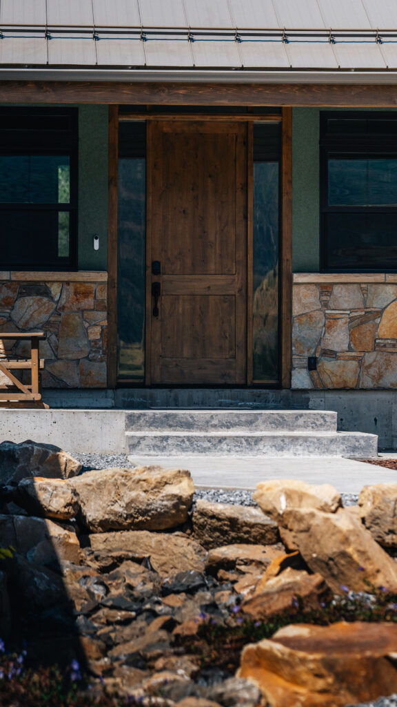 The Provo Canyon Build is a stunning custom residence designed to harmonize with the dramatic beauty of the surrounding mountain landscape. Featuring a durable standing seam metal roof, handcrafted timber accents, and natural stone elements, the home blends rustic craftsmanship with refined modern design. The exterior showcases thoughtful architectural details such as exposed wood trusses, expansive windows, and warm wood finishes that complement the earthy tones of the canyon environment. Carefully designed walkways, natural rock landscaping, and panoramic mountain views create a seamless connection between the home and its surroundings, resulting in a residence that feels both luxurious and perfectly integrated with the natural setting of Provo Canyon.