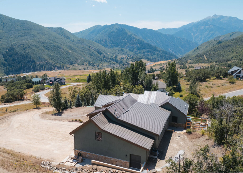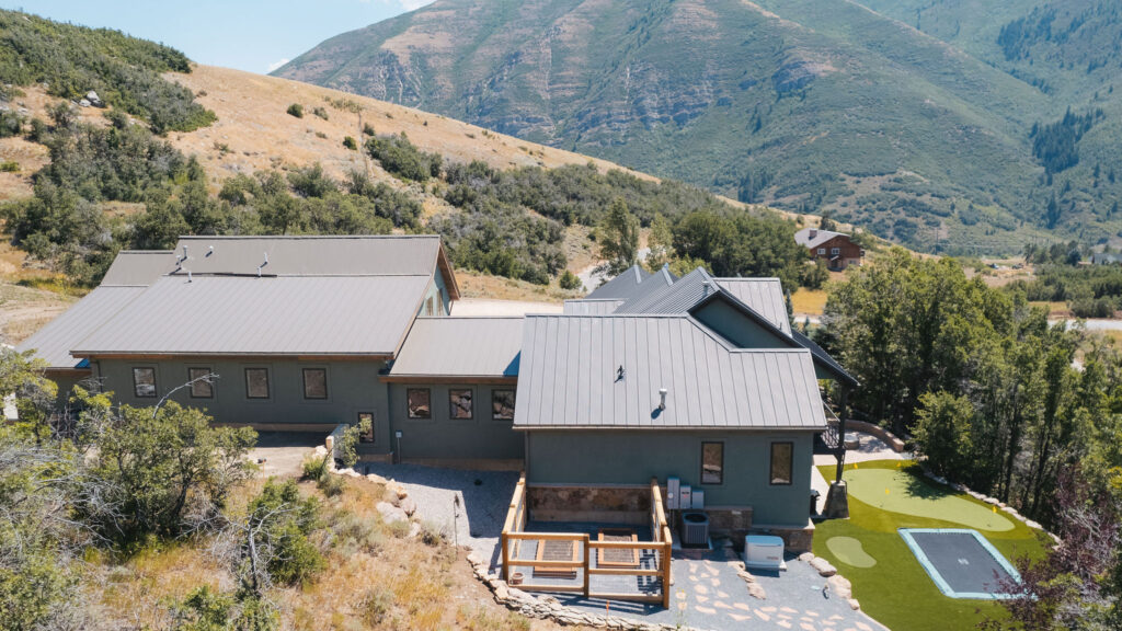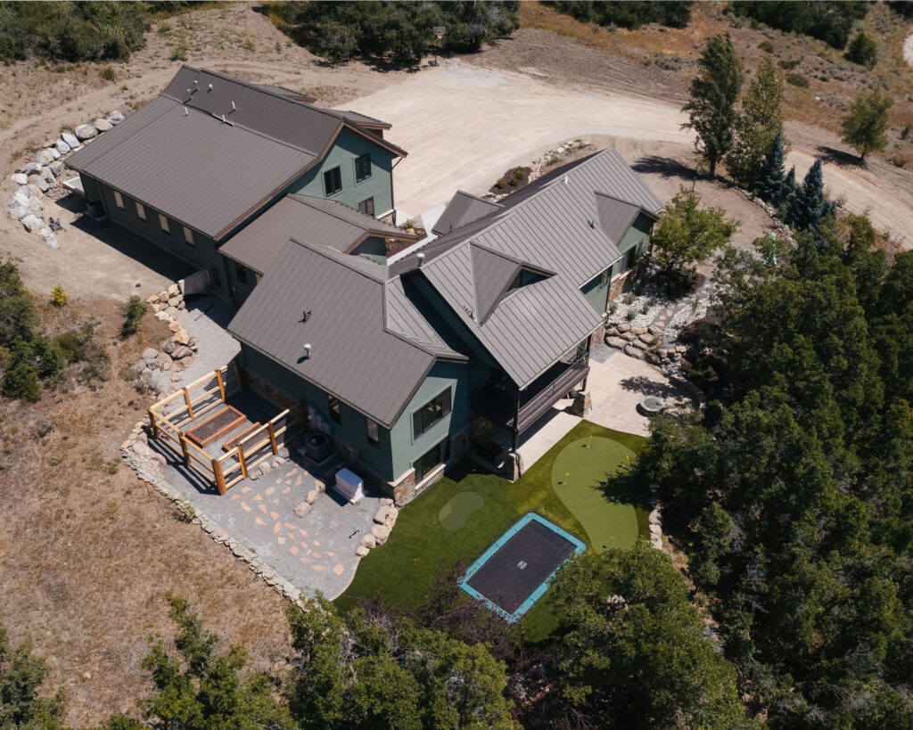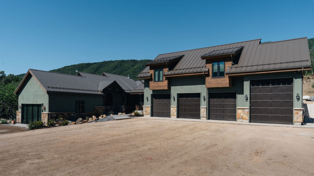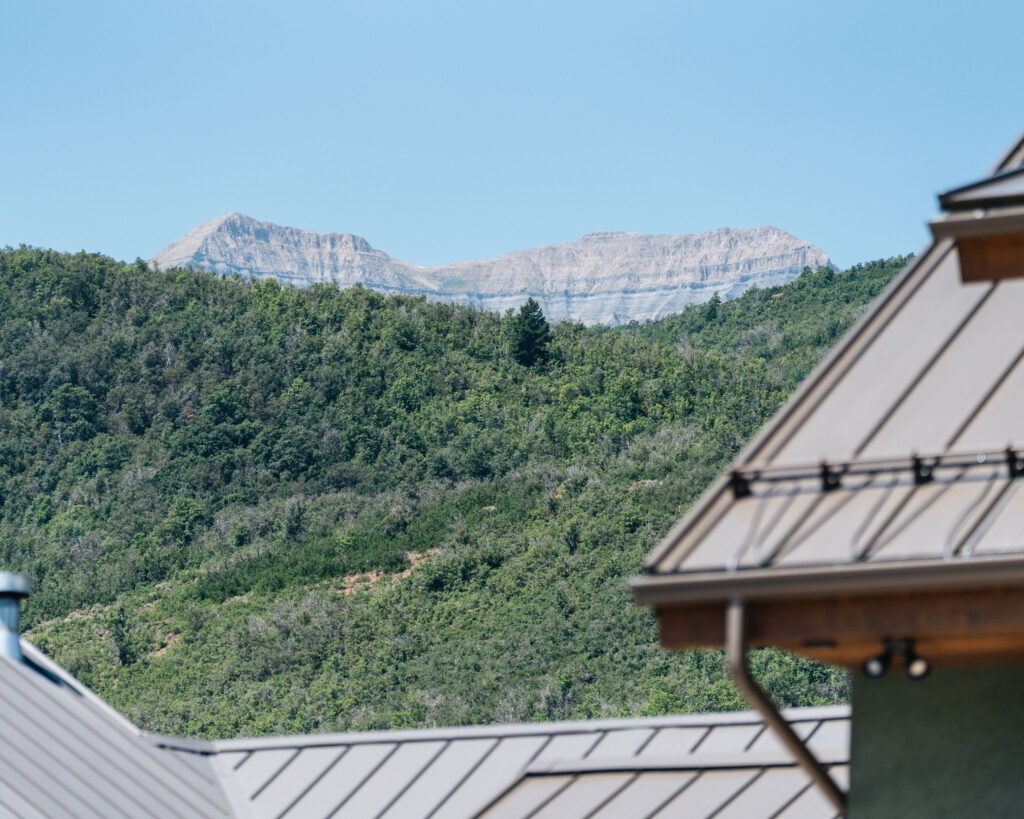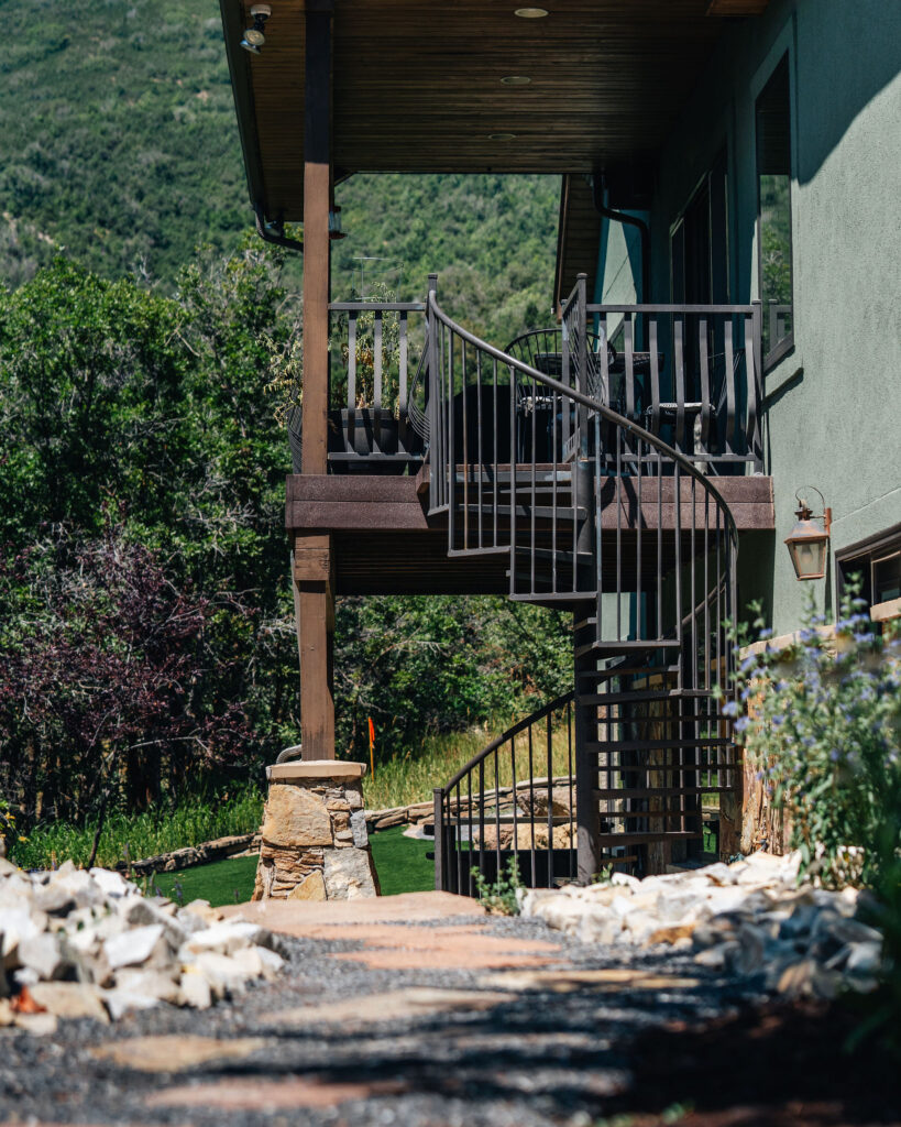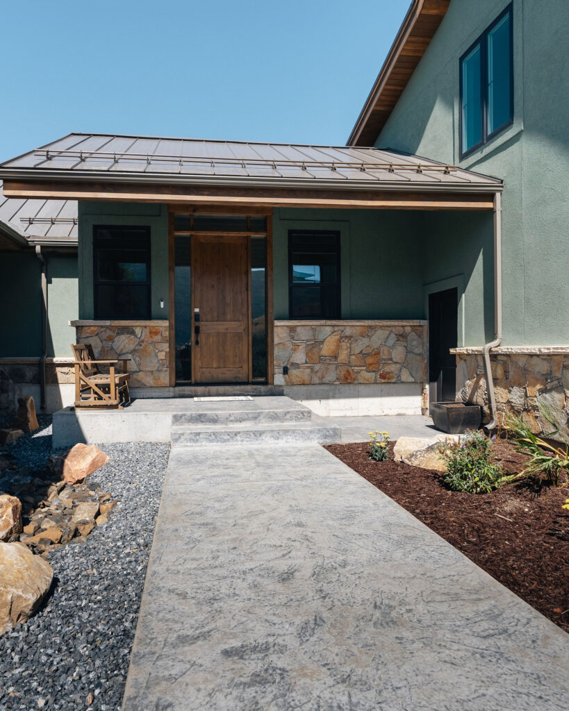 The Provo Canyon Build is a stunning custom residence designed to harmonize with the dramatic beauty of the surrounding mountain landscape. Featuring a durable standing seam metal roof, handcrafted timber accents, and natural stone elements, the home blends rustic craftsmanship with refined modern design. The exterior showcases thoughtful architectural details such as exposed wood trusses, expansive windows, and warm wood finishes that complement the earthy tones of the canyon environment. Carefully designed walkways, natural rock landscaping, and panoramic mountain views create a seamless connection between the home and its surroundings, resulting in a residence that feels both luxurious and perfectly integrated with the natural setting of Provo Canyon.