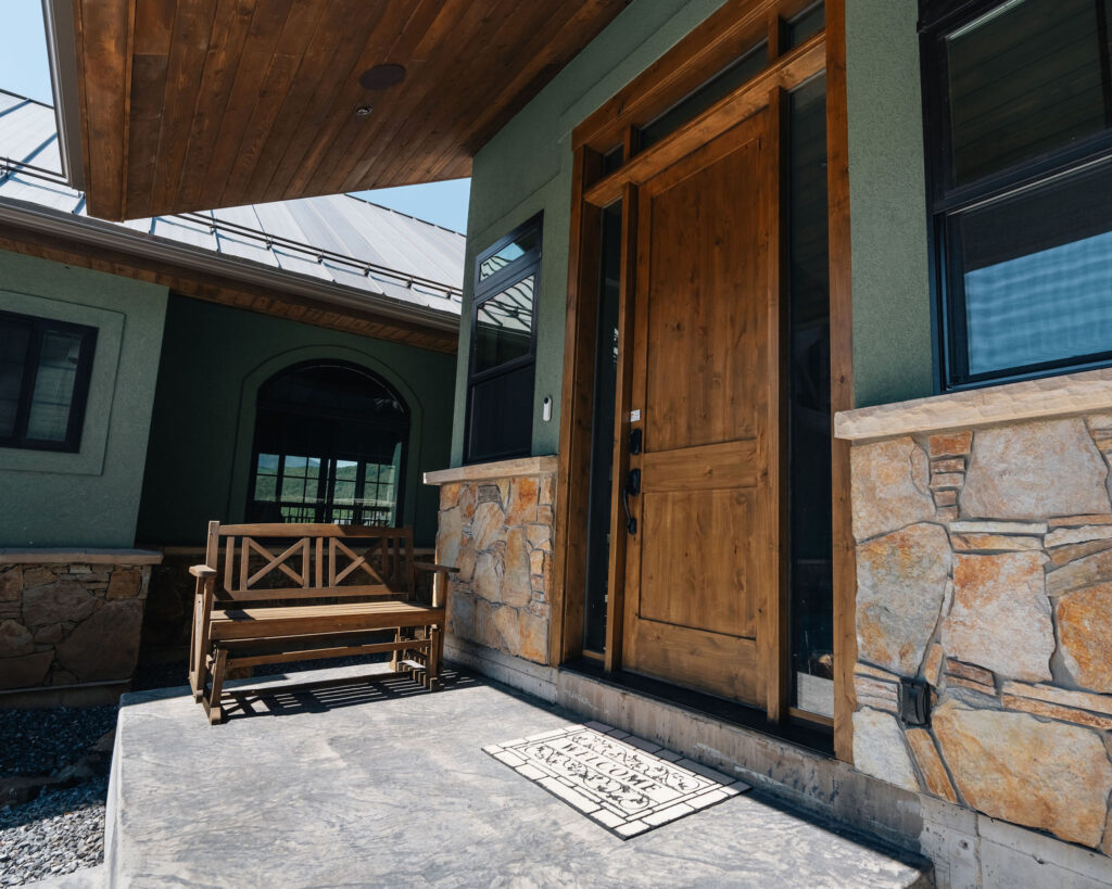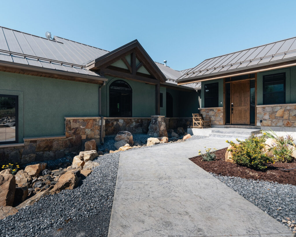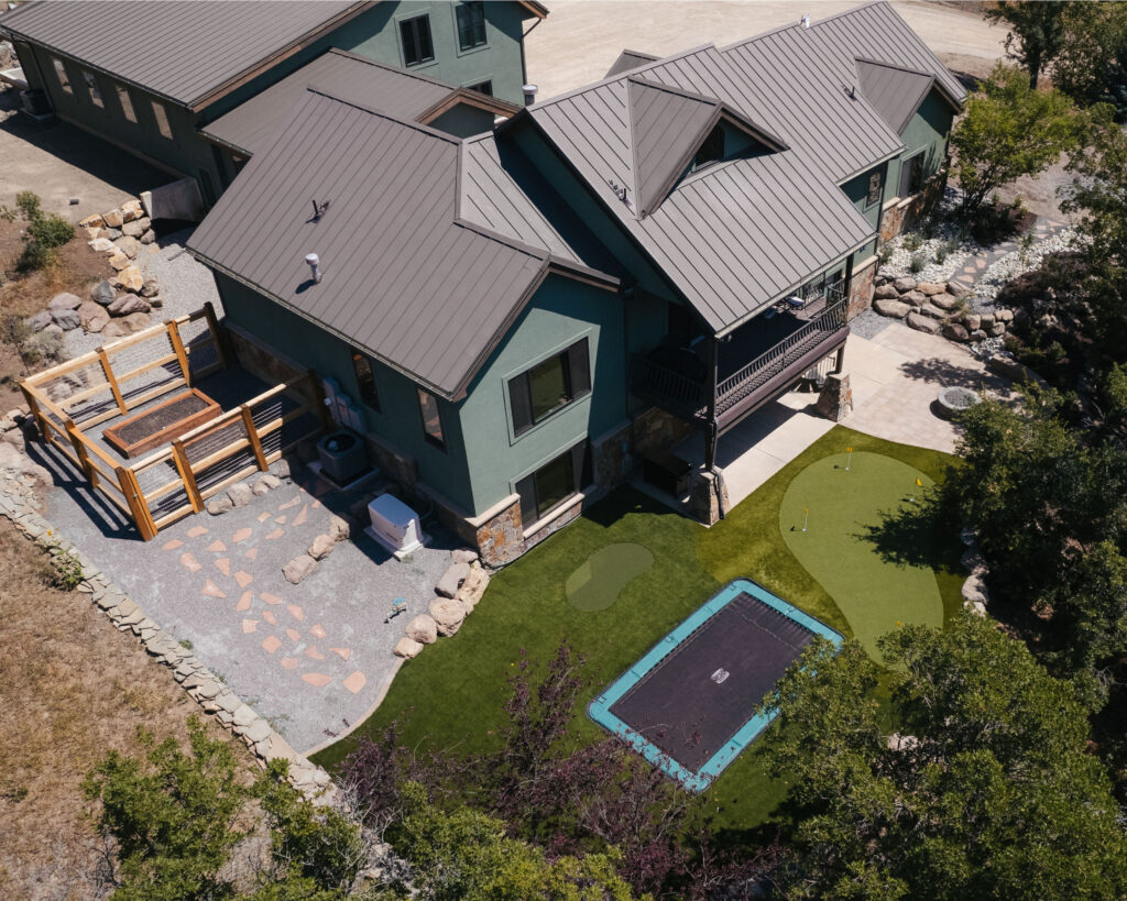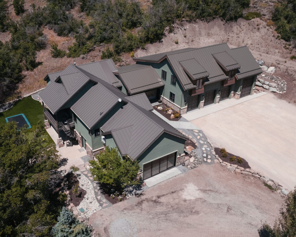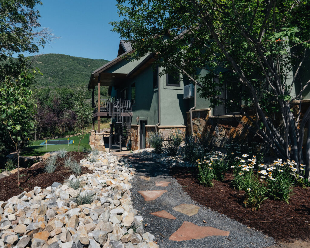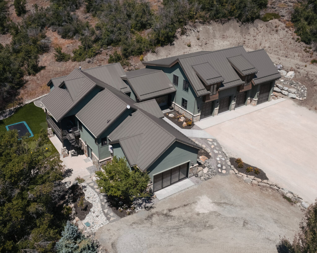 The Provo Canyon Build is a stunning custom residence designed to harmonize with the dramatic beauty of the surrounding mountain landscape. Featuring a durable standing seam metal roof, handcrafted timber accents, and natural stone elements, the home blends rustic craftsmanship with refined modern design. The exterior showcases thoughtful architectural details such as exposed wood trusses, expansive windows, and warm wood finishes that complement the earthy tones of the canyon environment. Carefully designed walkways, natural rock landscaping, and panoramic mountain views create a seamless connection between the home and its surroundings, resulting in a residence that feels both luxurious and perfectly integrated with the natural setting of Provo Canyon.